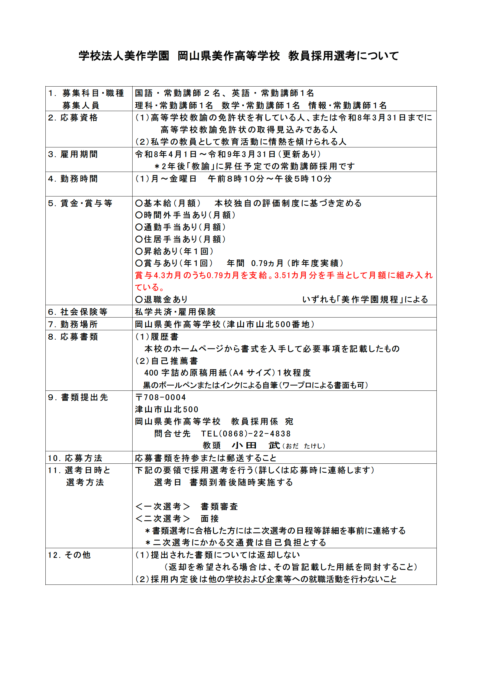 教職員採用募集一覧