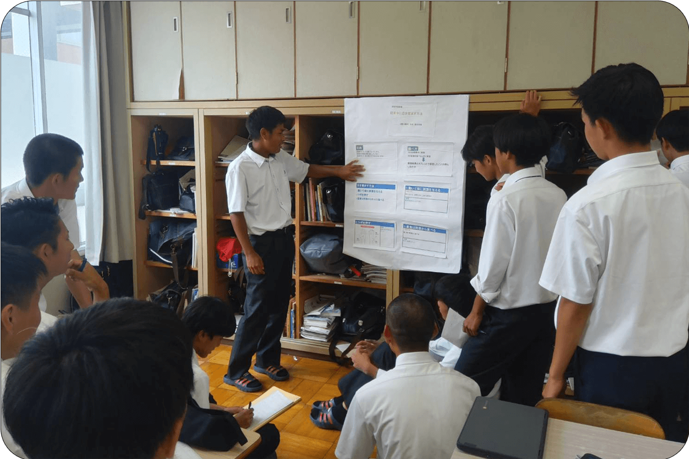本校のテーマである“地域”を元に、地域課題に根差した探究活動に重きを置いています。探究学習においては、主体的に調べ、まとめ、表現することで、座学では得られない多様なリテラシーを育成していきます。