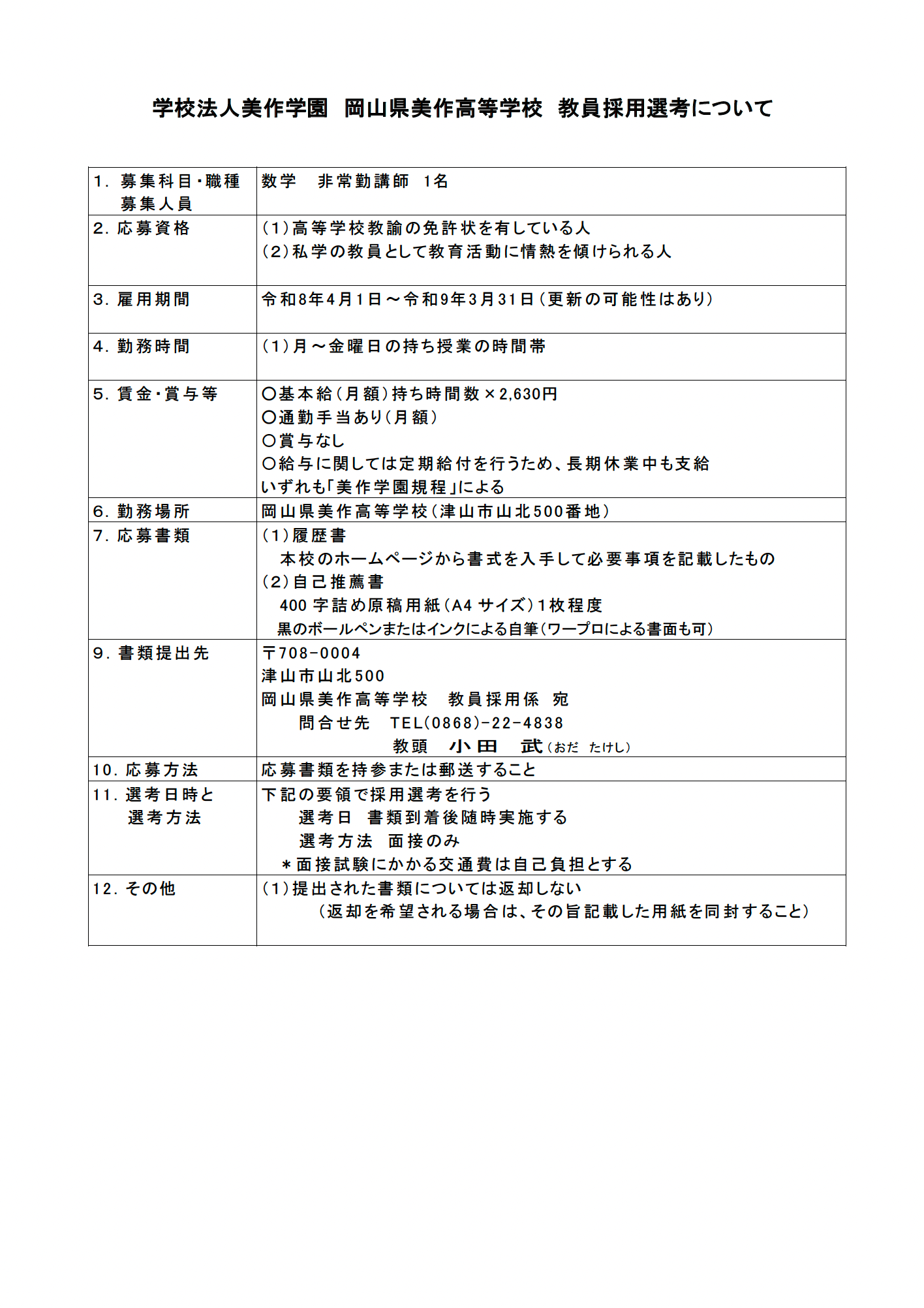 2026年4月1日  国語2名・英語1名・理科1名・数学1名・情報1名