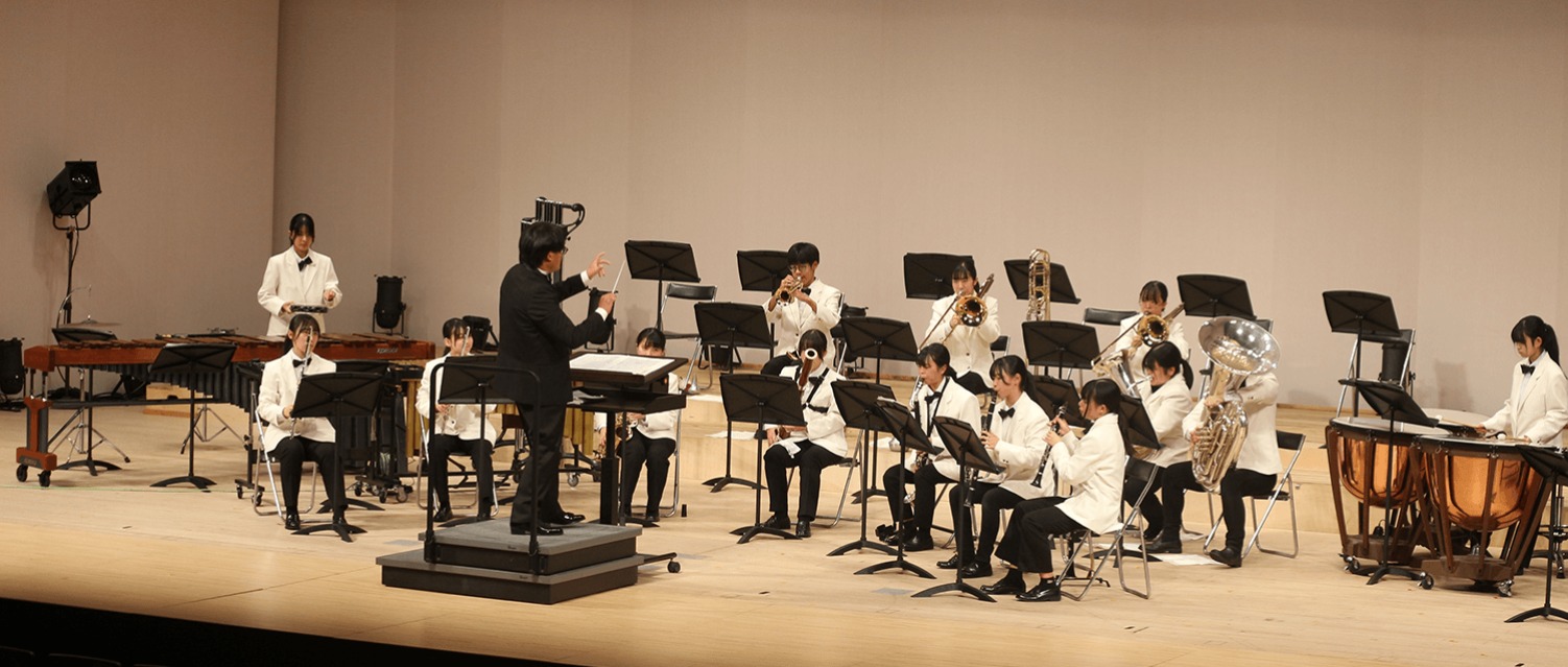 私たち吹奏楽部は「笑顔・本気・元気、夢叶うまで」をモットーに活動しています。 地域での依頼演奏、定期演奏会など様々な活動があり音楽を通して、自己の成長と感動を体験できる部です。 一緒に音楽を楽しみませんか。