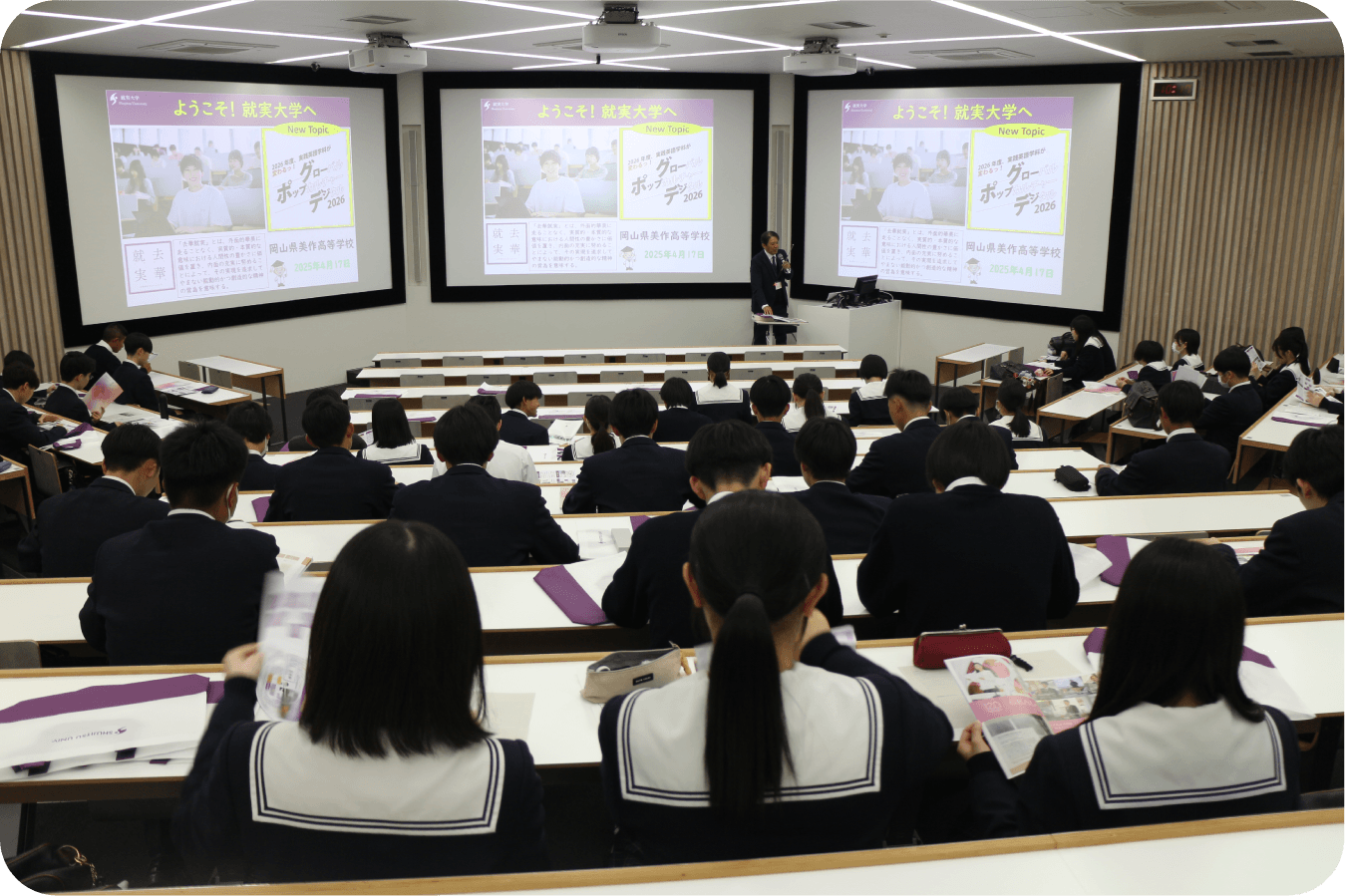 5教科の学習だけでなく、資格、探究学習、部活動、ボランティア活動などを通じて、近年入試の主流になりつつある総合型選抜や学校型推薦選抜の中で問われる、幅広い活動を通した主体性や協働力・思考力などの育成を目指していきます。 探究学習では“地域”というのをテーマに、岡山県北(美作地区)のまちづくりに挑戦していきます。生徒たちが主体的に課題解決に向かい、それを外部へ発信してくことで、入試やその先にある社会で必要な素養を身につけていきます。